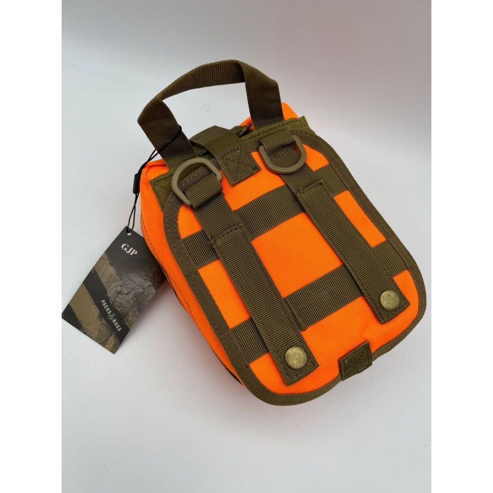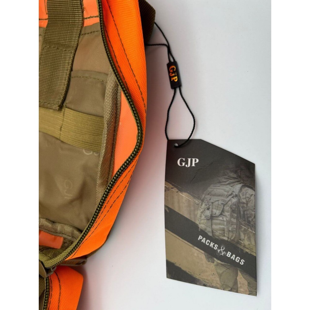 Сумка тактическая медицинская от бренда GJP выполнена из высококачественного водонепроницаемого полиэстера. Внутренний материал - нейлон. Особенностью является оранжевый цвет.