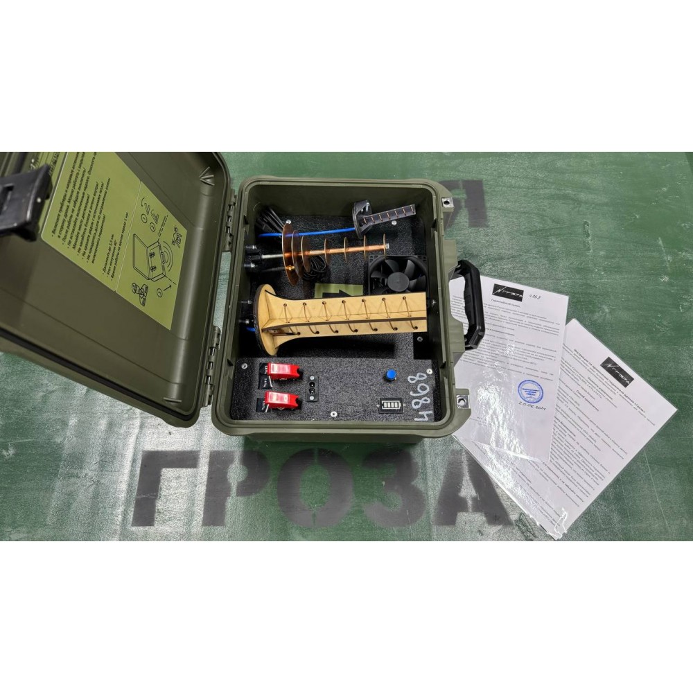Подавитель БПЛА «Гроза 5.8» представляет собой направленное устройство радиоэлектронной борьбы, предназначенное для нейтрализации коммерческих дронов таких производителей, как DJI и Autel и др.. Он выполнен в виде герметичного и ударопрочного кейса.