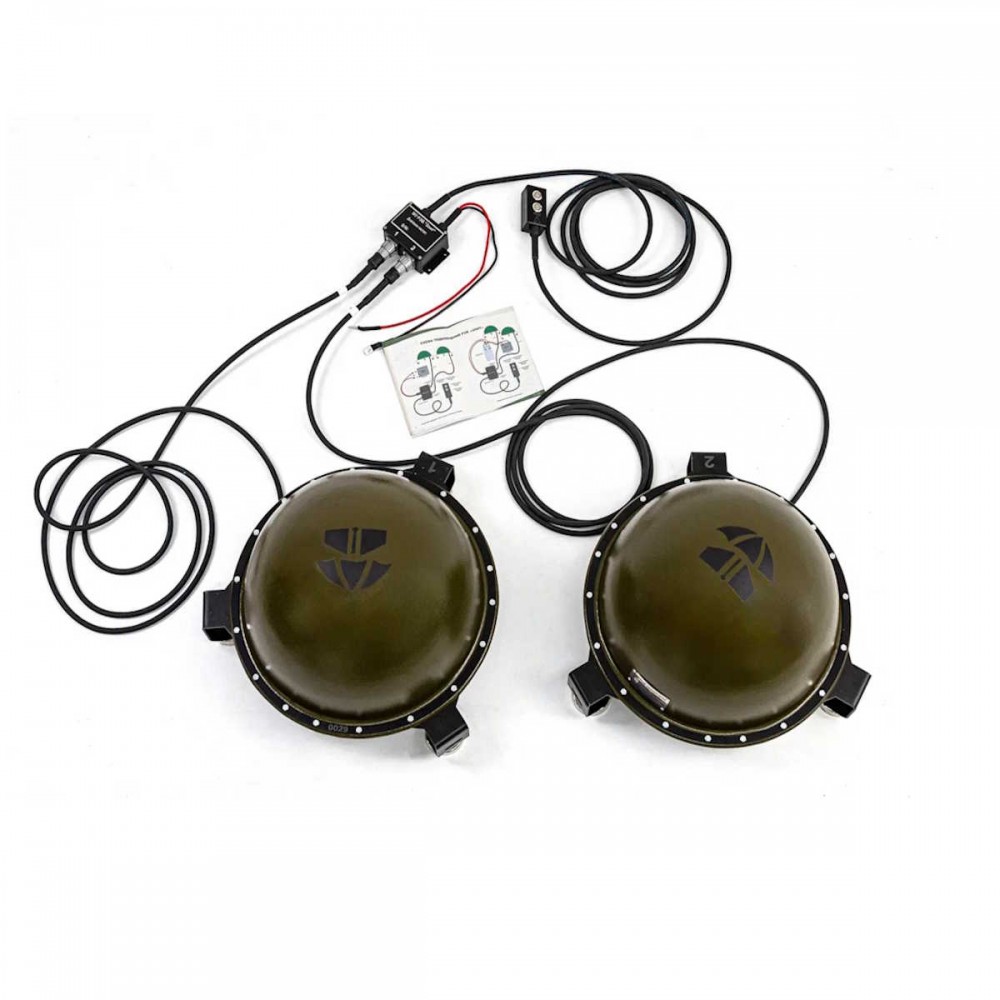 Система L9 состоит из двух отдельных модулей, которые размещаются на технике с помощью магнитных креплений. Такое решение позволяет гибко выбирать точки установки — на крыше, бортах или багажных платформах — и равномернее закрывать машину по периметру. Питание подаётся от штатной бортовой сети 12/24 V, без сложной доработки электрики, а управление сведено к простому включению по кнопке: станция работает в одном рабочем режиме, без сложных настроек и меню.